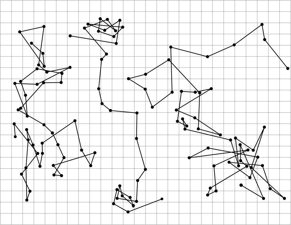 Reproduced from the Jean Baptiste Perrin book Les Atomes: tracings of the motions of three colloidal particles, as seen under the microscope. Courtesy of Wikipedia Commons.