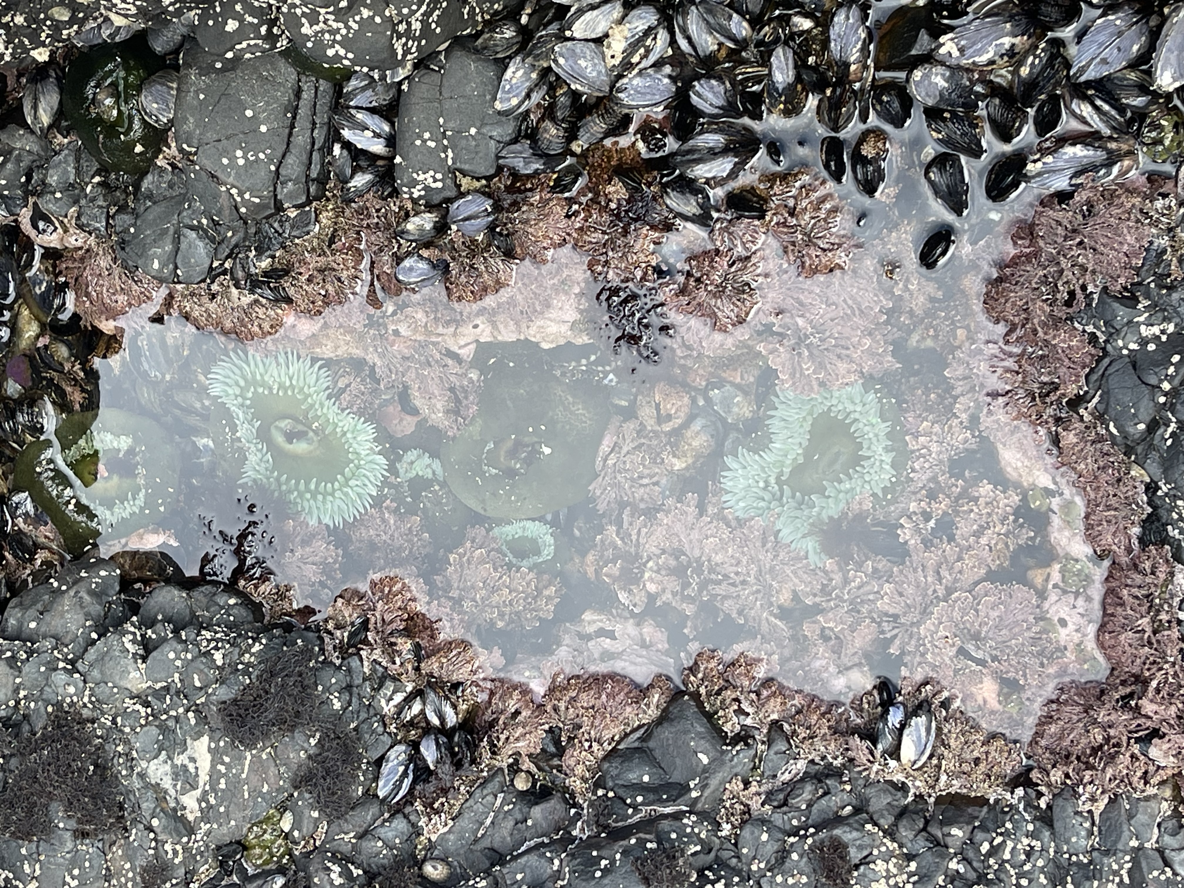 What some may not know about tide pools is that they are not just mere lifeless puddles of ocean water — they are rich self-sustaining ecosystems of plant and marine life that reflect the ocean’s ecosystem at large. In fact, tide pools are home to some of the most complex biodiversity of any other biome on the planet. Kneeling down on the rocks, I gazed into these little marine worlds with fascination. I was amazed at how much seemingly effortless coexistence there was between different species, especially in such confined spaces. From sea stars to sea anemones to hermit crabs, there was no shortage of life here.